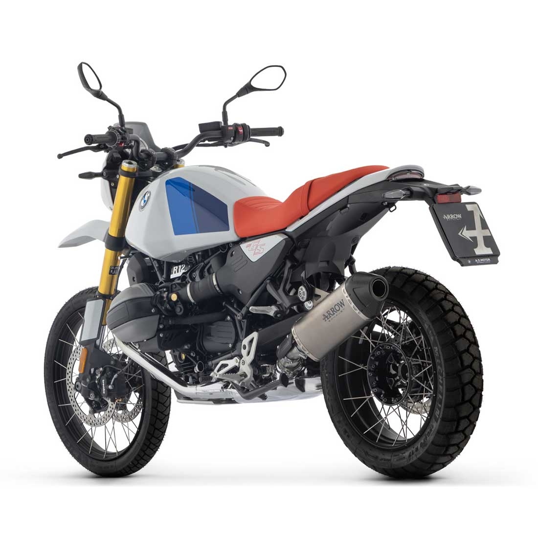Línea Arrow específica para BMW R 12 G/S 2025 (Vehicle type GN12), con homologación EC/ECE y normativa Euro5+ según referencia. Aplicación indicada para moto con doble sonda lambda (two oxygen sensor).