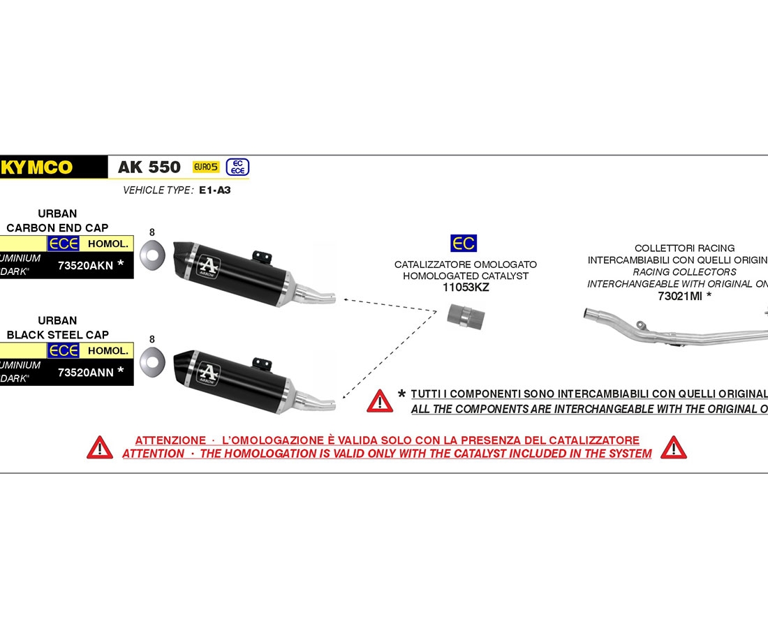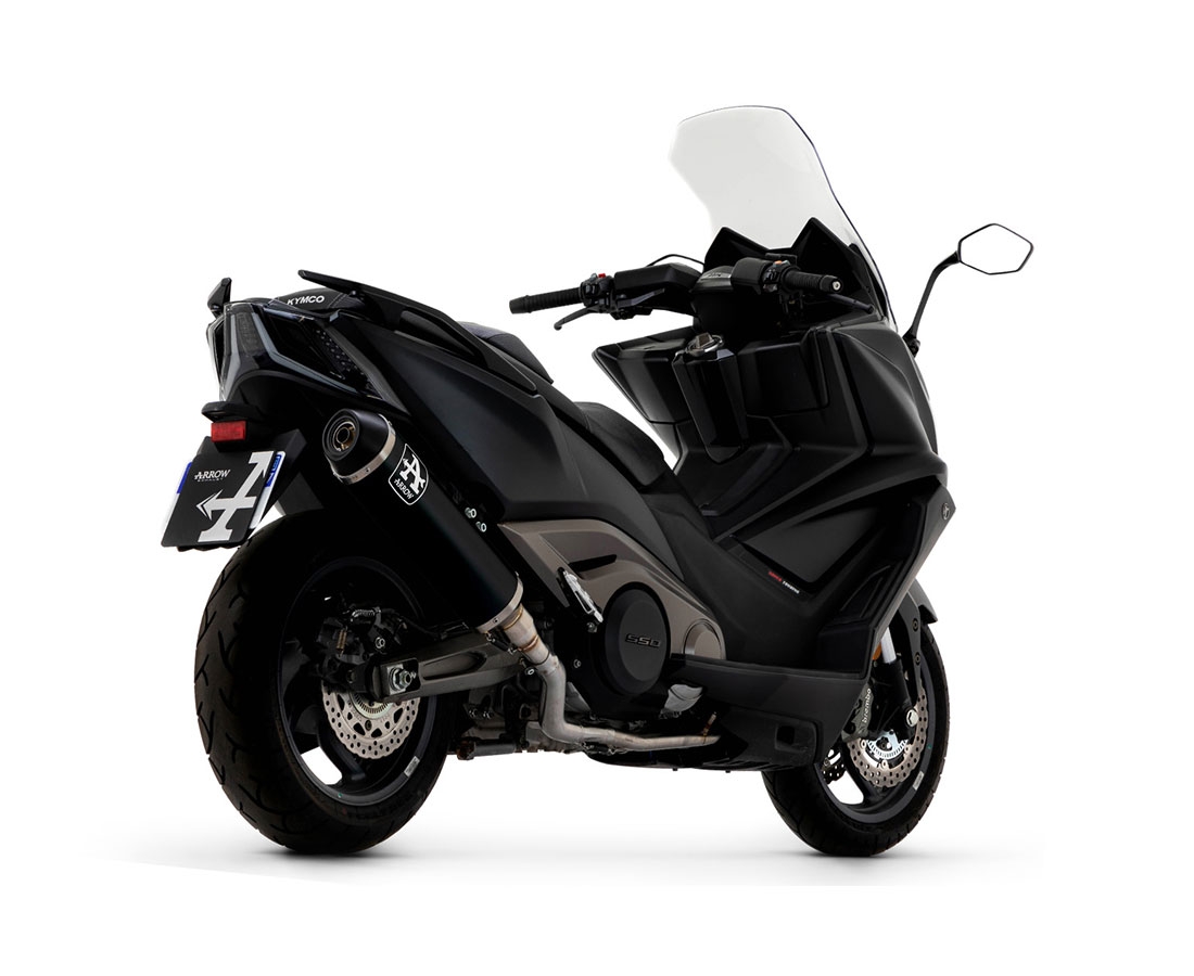 Pack ahorro Arrow escape específico para Kymco AK 550 2021. El pack incluye colector, silencioso y catalizador homologado.