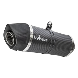 Silencioso escape LeoVince 14186E Lv One Evo Ktm DUKE 125 2017-2019. El silencioso Lv One Evo posee un diseño compacto, moderno y de líneas cuadradas. El cuerpo del silencioso está realizado en fibra de carbono de alta calidad para una resistencia, rendimiento y ligereza exepcional. La tapa final del silencioso LV One Evo está cortada asimétricamente y fabricada en fibra de carbono para combinar el máximo rendimiento y ligereza sin renunciar al estilo Made in Italy.