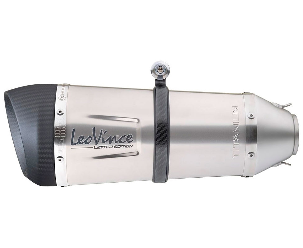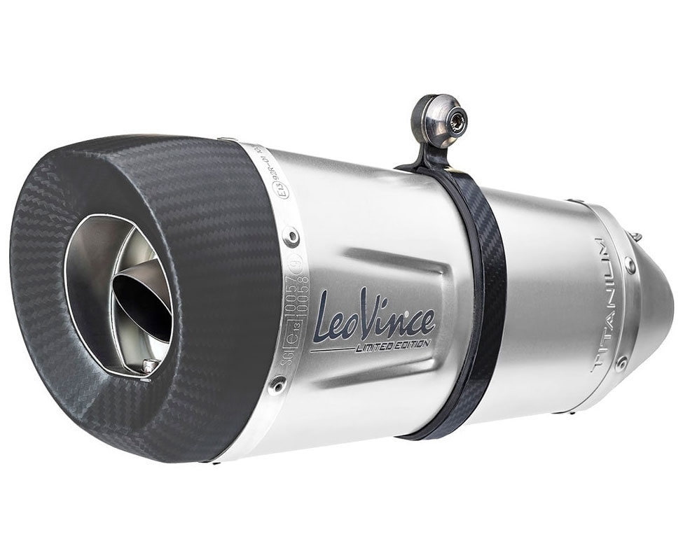 Silencioso escape LeoVince 14243ST Factory S Yamaha YZF-R1/M 2017-2019. Espíritu italiano y alma del guerrero, así es el nuevo escape LeoVince Factory S. Este escape posee toda la tecnología de LeoVince fruto de la experiencia e investigación adquirida en la competición. El producto está desarrollado individualmente al banco de prueba para cada modelo de moto para ofrecer las mejores prestaciones. El cuerpo del silencioso está realizado en titanio de gran durabilidad. La tapa final del silencioso Factory S así como la abrazadera de sujeción, también están realizadas en fibra de carbono. Con ello se logra la perfecta armonía en su diseño con las máxima ligereza.