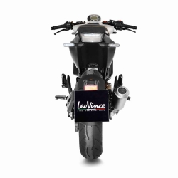 Silencioso escape Leovince 15242 LV-10 Husqvarna Svartpilen / Vitpilen 401 2020-2021. El escape LeoVince LV-10 racng es el resultado de la colaboración con los mejores equipos de Moto2 y Moto3 y el saber hacer adquirido durante años de experiencia en las carreras de MotoGP y SBK. Leovince ha desarrollado un silencioso muy compacto para garantizar la máxima ligereza, el máximo rendimiento y el inconfundible sonido racing LeoVince. La copa de salida con acabado arenado está equipada con una red especial apagachispas para infundir en el silenciador un aspecto muy racing.