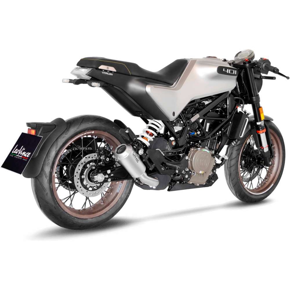 Silencioso escape Leovince 15242T LV-10 Husqvarna Svartpilen / Vitpilen 401 2020-2021. El escape LeoVince LV-10 racng es el resultado de la colaboración con los mejores equipos de Moto2 y Moto3 y el saber hacer adquirido durante años de experiencia en las carreras de MotoGP y SBK. Leovince ha desarrollado un silencioso muy compacto para garantizar la máxima ligereza, el máximo rendimiento y el inconfundible sonido racing LeoVince. La copa de salida con acabado arenado está equipada con una red especial apagachispas para infundir en el silenciador un aspecto muy racing.