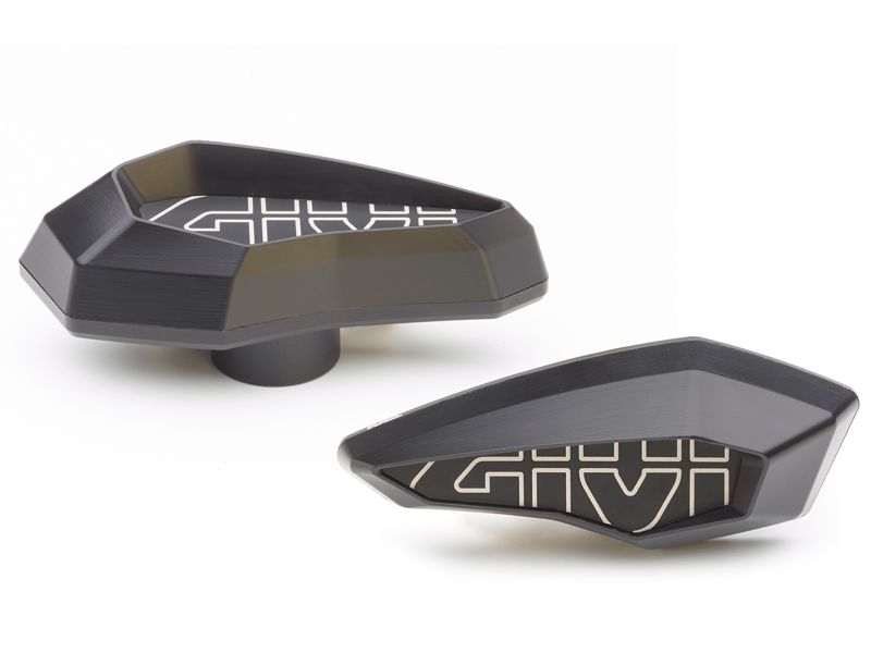 Slider protector Givi SLD01BK. Nuevo protector universal Givi SLD01BK, realizado en polímero reforzado con fibra de vidrio y base en aluminio de una sola pieza. Disponible en 4 colores anodizados diferentes. Para su montaje es necesario combinar con el kit específico de cada modelo de moto. Precio del juego.