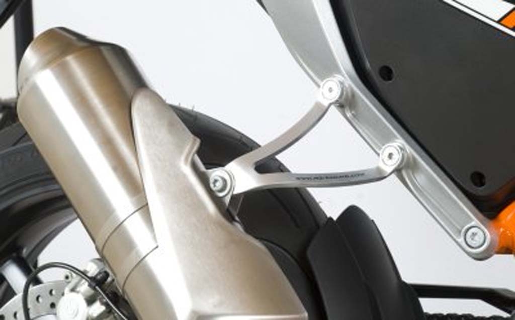 Soporte De Escape Rg Racing Eh0052si Plata KTM Duke 690 2013 2018. El soporte de escape para moto RG Racing ofrece una solución elegante y funcional para quienes prefieren no llevar pasajero y desean mejorar la estética de su motocicleta. Este soporte es ideal si utilizas una cubierta para el asiento del pasajero y deseas eliminar los estribos traseros, que pueden resultar antiestéticos sin su uso práctico.