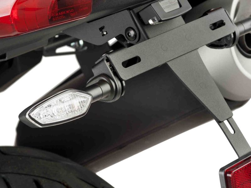 Soporte Intermitentes Puig 9604N. Soporte de intermitente Puig 9604N para intermitentes originales (ver compatibles) y fabricado en acero con acabado negro. Es la solución perfecta para los que quieren montar el portamatriculas Puig manteniendo el intermitente original de la moto. Además este soporte esconde el vacío que deja el intermitente original al sustituirlo.