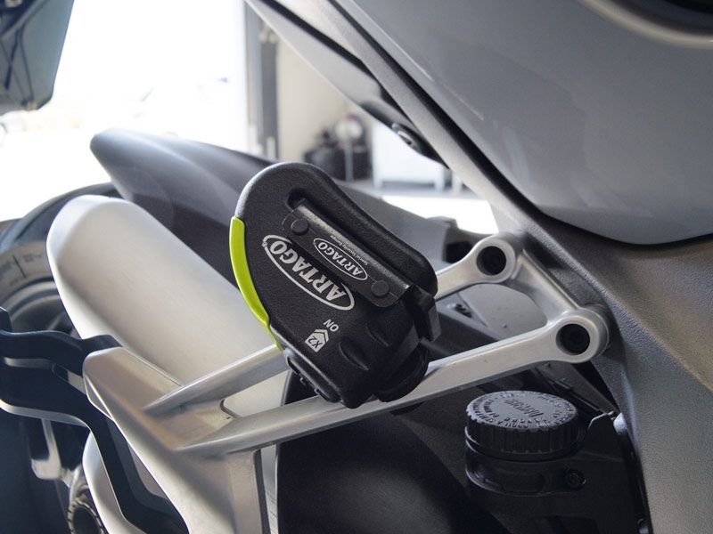 Soporte antirrobo Artago K400. Soporte universal Artago K400 que permite colocar el antirrobo 300X en el lugar adecuado para su transporte. El kit cuenta con un sistema anti-vibración que le permiten transportar el antirrobo de máxima seguridad, sin ningún tipo de ruidos ni holguras. Una solución muy práctica para el motorista que que le facilita el día a día. Sistema de anclaje para estribera.