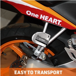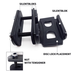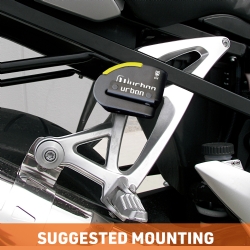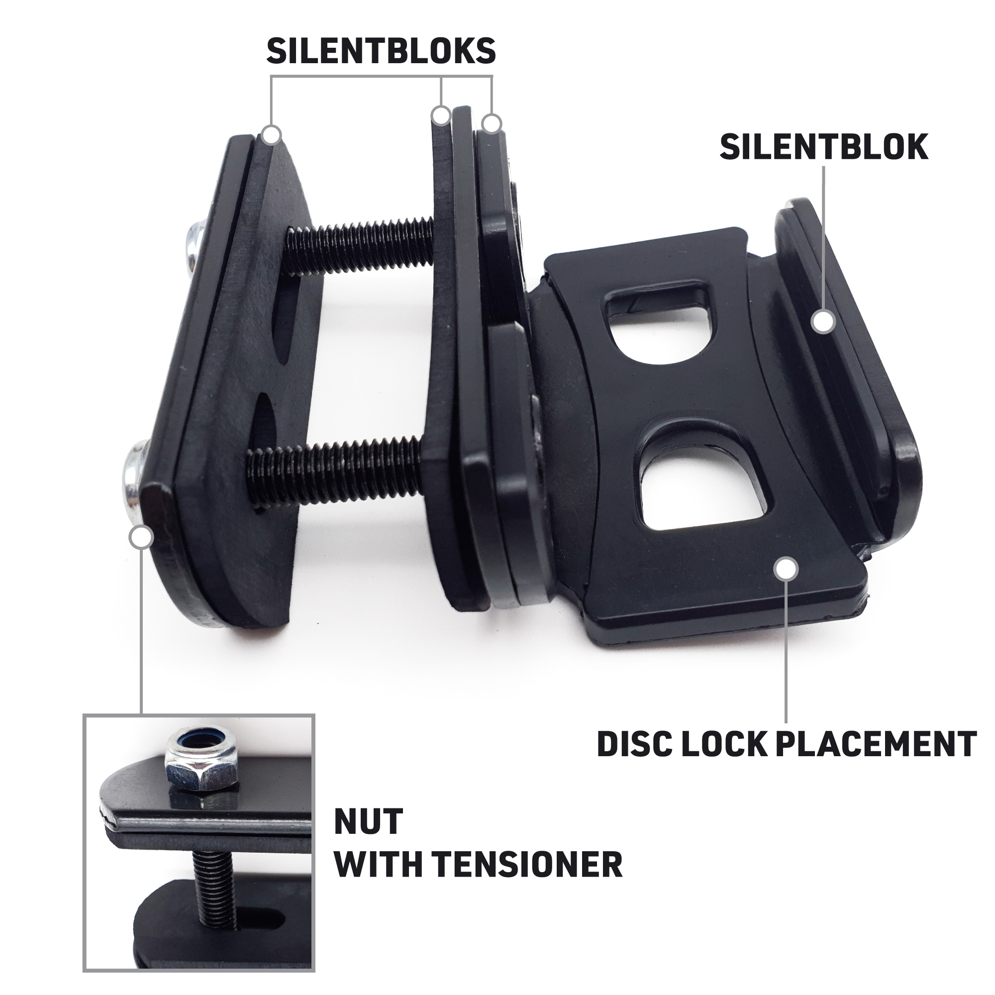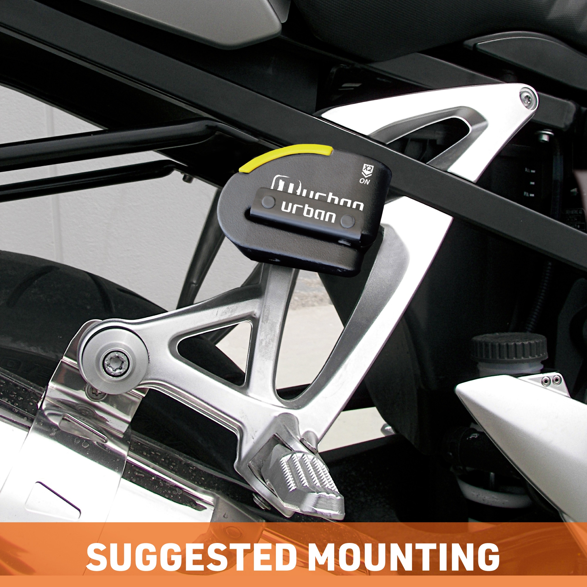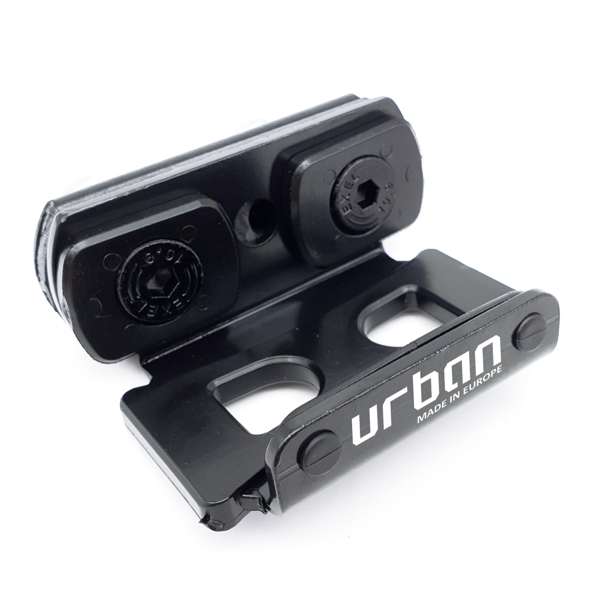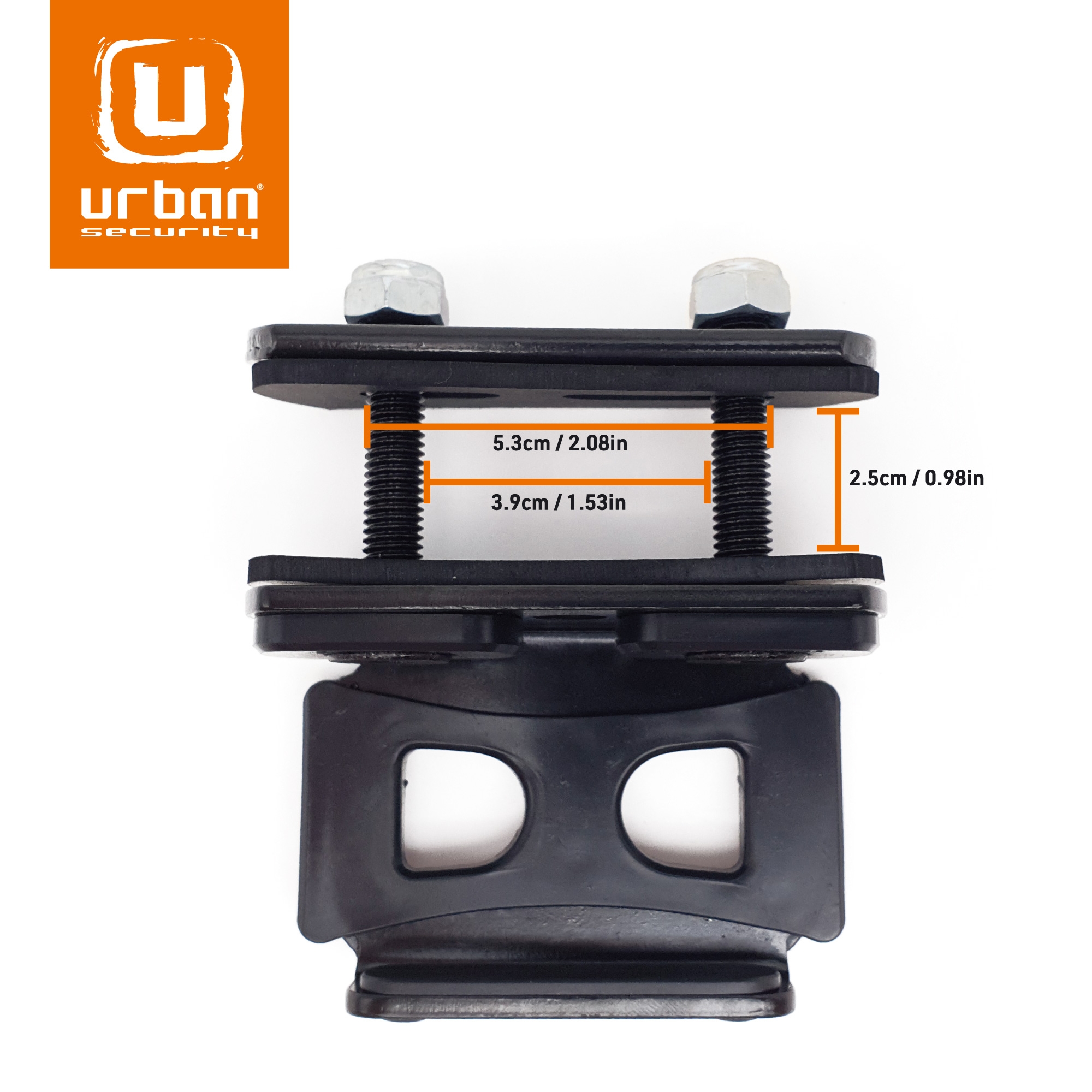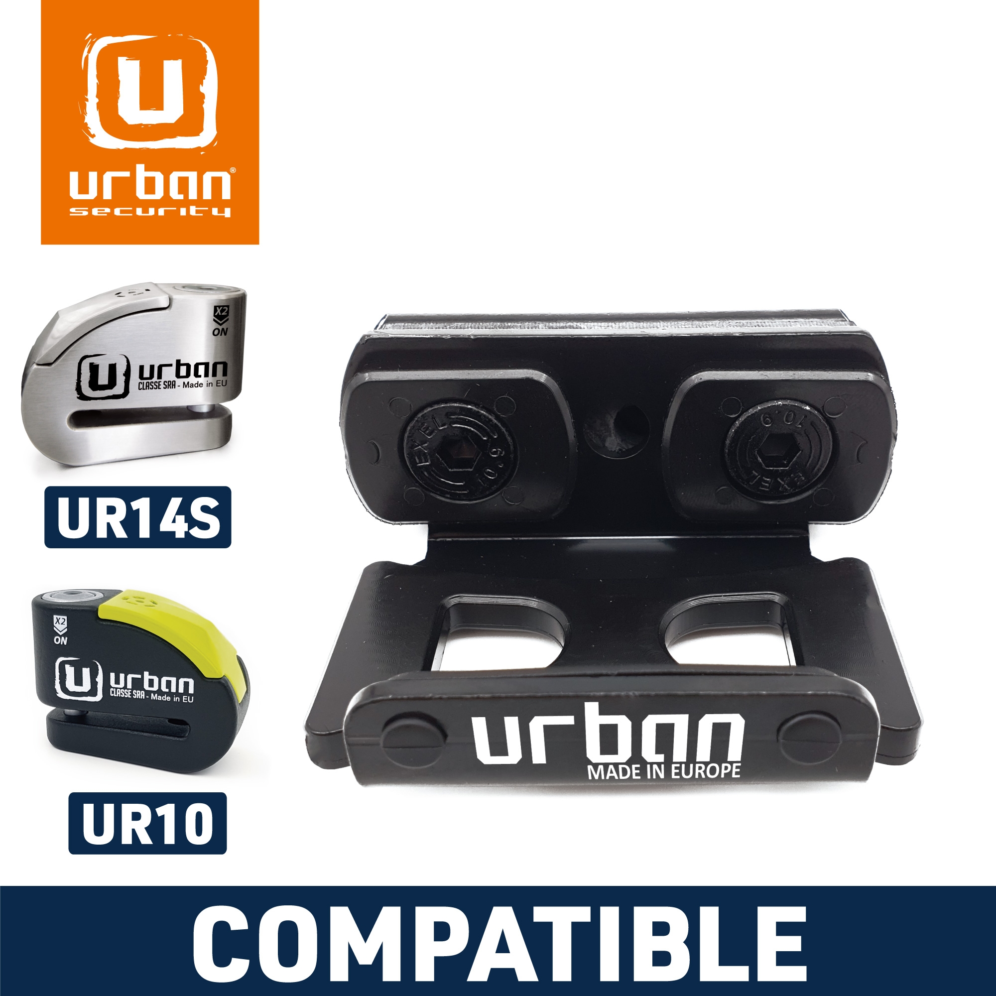 Soporte antirrobo Urban Security UR400. Soporte universal Urban Security UR400 para los tubos de la estribera y que permite transportar cómodamente el antirrobo de disco con alarma Urban Security UR14S-UR10. Este soporte está realizado con materiales de calidad y gracias a su diseño, ofrece un transporte sin vibraciones ni ruidos molestos.