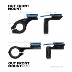 Tanto el soporte frontal estándar como el Out Front Mount PRO están diseñados pensando en la aerodinámica. El modelo PRO destaca por su perfil bajo y su brazo de montaje de aluminio anodizado, que ofrece una rigidez excepcional. Para una mayor versatilidad, el soporte frontal estándar puede invertirse para adaptarse perfectamente a la potencia de tu manillar.