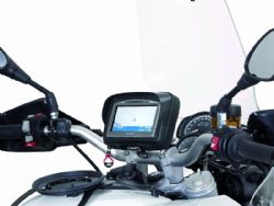 Soporte dispositivo Givi S901A Smart Mount. El Smart Mount Givi S901A es un soporte universal realizado en aluminio mecanizado y anodizado. Su diseño está pensado para colocar en el centro del manillar de la moto. El soporte central de enganche, permite regular la posición del navegador según las necesidades de cada motorista. Gracias a las dos ranuras en el soporte inferior, es posible montar el Smart Mount en la gran mayoría de motos siempre y cuando los combinemos con los kit de tornillería en acero inox y sus relativos distanciadores (ver en cada moto). A combinar con el kit de tornillería especifico _ _ _ SKIT. Adjuntamos un PDF con la lista de compatibilidades.