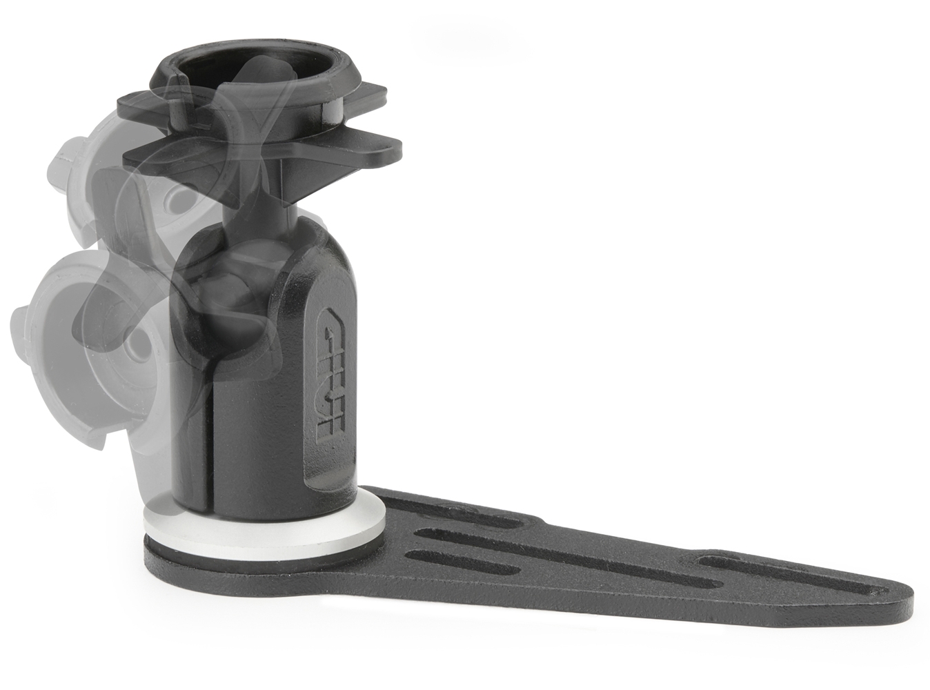 - Se puede girar el soporte en el eje vertical y manejar el movimiento esférico del soporte superior desatornillando el correspondiente tornillo.