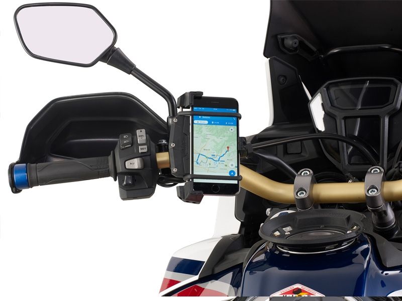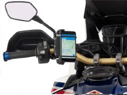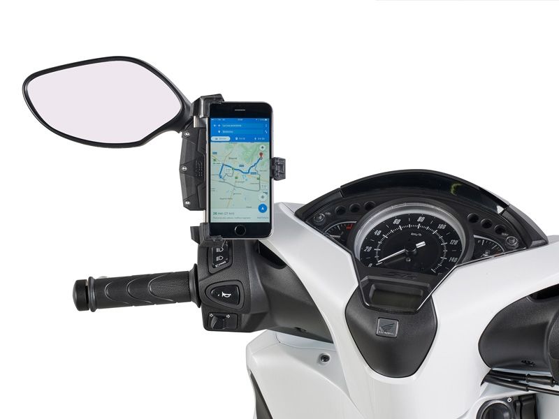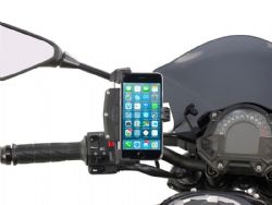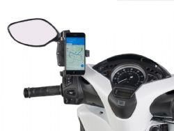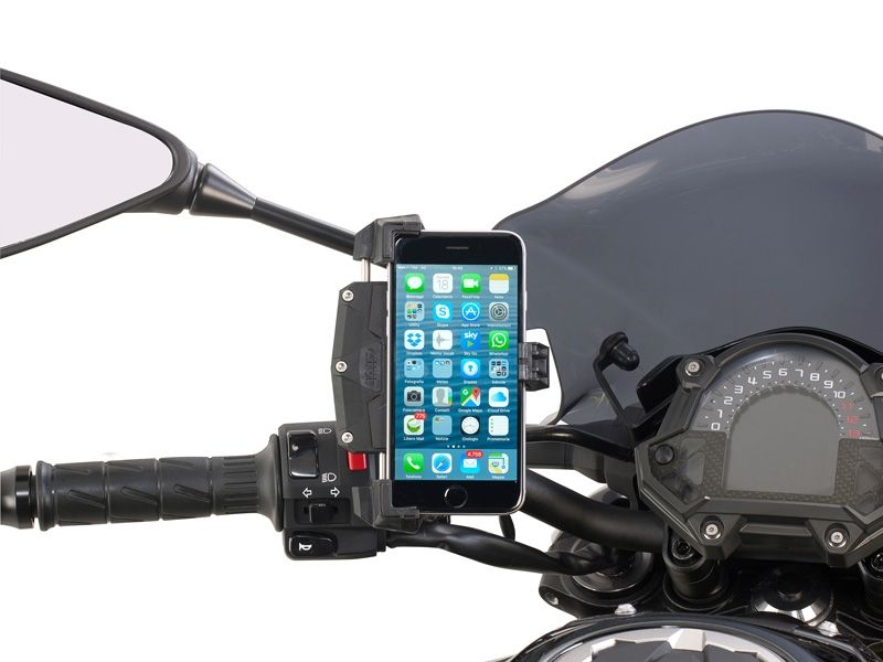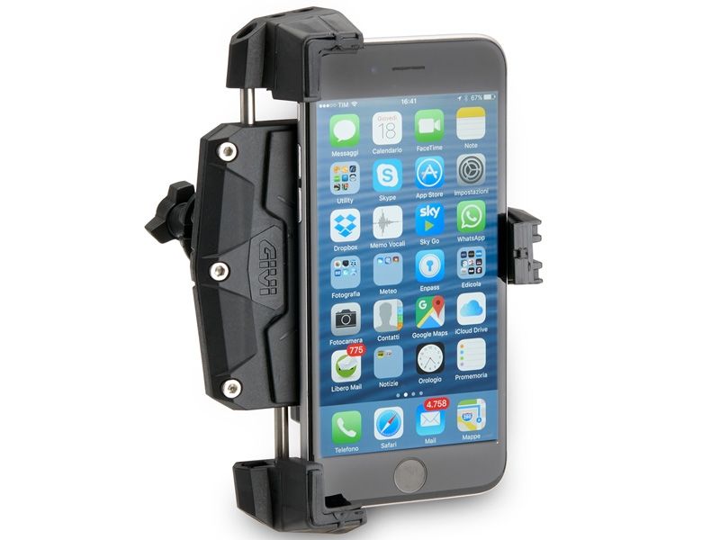 Porta smartphone Givi S920M Universal. El soporte de dispositivos Givi S920M posee un diseño universal para adaptarse al manillar de la mayoría de motos del mercado. El soporte de dispositivos Givi S920M está equipado con un sistema de enganche-desenganche rápido para fijar al manillar. Realizada en materiales de tecno polímero y goma para una mejor sujeción en el apoyo del smartphone. El porta smartphone Givi S920M también dispone de elásticos de seguridad para el uso con baches. Compatible con Smartphones con dimensiones externas de mínimo 112 x 52 mm y máximo 148 x 75 mm.