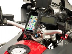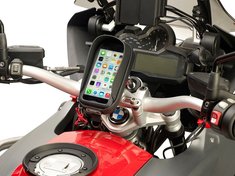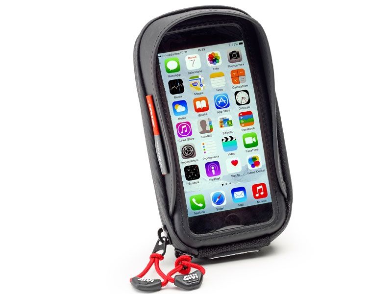 Porta smartphone Givi S956B Universal. El soporte de dispositivos Givi S956B posee un diseño universal para adaptarse al manillar de la mayoría de motos del mercado. El soporte de dispositivos Givi S956B está equipado con un sistema de enganche-desenganche rápido para fijar al manillar o al retrovisor (gracias a su sistema patentado). Realizada en Eva recubierto con inserciones PU y tapa teroformada. La funda es totalmente impermeable y gracias a su cremallera waterproof, la estanqueidad está garantizada. El porta smartphone Givi S956B también dispone de parasol anti reflejo, correa de seguridad, puerto para la salida del cable y cinta de cierre con ajuste regulable. Adjuntamos un PDF con la lista de compatibilidades.