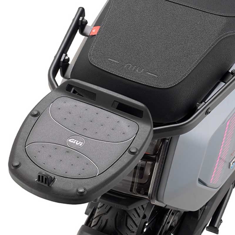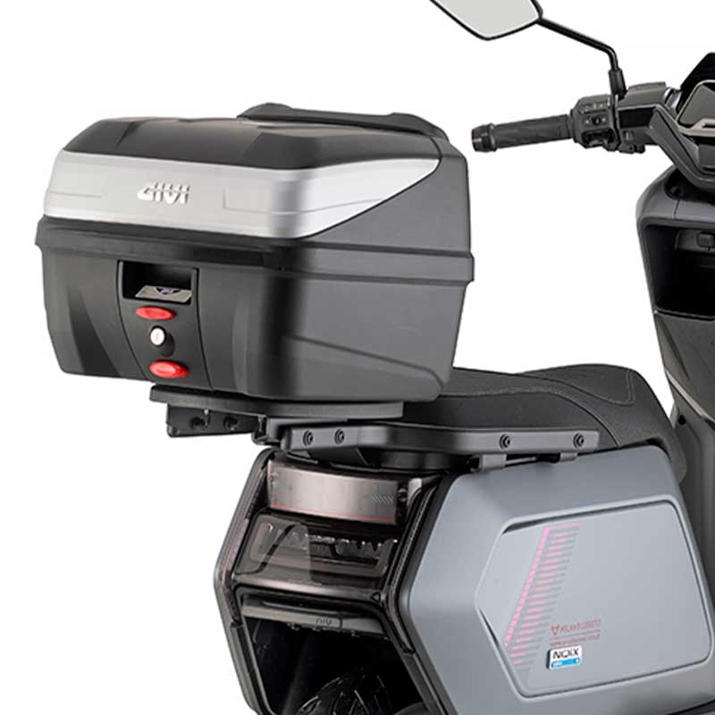 El soporte maleta Givi SR8965 es un adaptador posterior específico para montar una maleta Givi MONOLOCK® en las NIU NQIX 150, 300 y 500 2025. Es una solución práctica y ligera para quienes quieren añadir un baúl trasero a su scooter eléctrico, ganando espacio para el casco, la mochila o la compra del día a día.