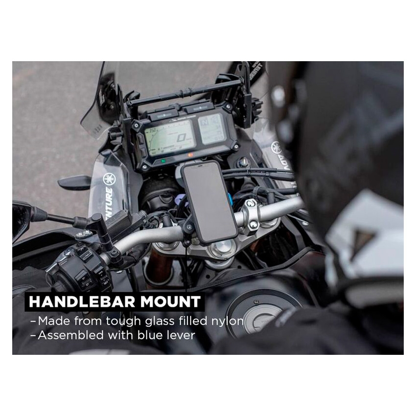 El diseño elegante de los soportes Quad Lock complementa la estética de tu moto y se integra a la perfección en el manillar. Además, puedes personalizar tu soporte con una palanca opcional de color para que haga juego con tu moto, combinando seguridad con personalización.