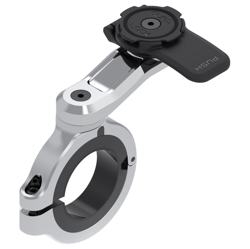- Estilo y Personalización: El soporte de manillar Quad Lock Pro está disponible en varios acabados, incluido el cromado, para que puedas elegir el que mejor combine con tu moto y mantener una estética elegante y cuidada.