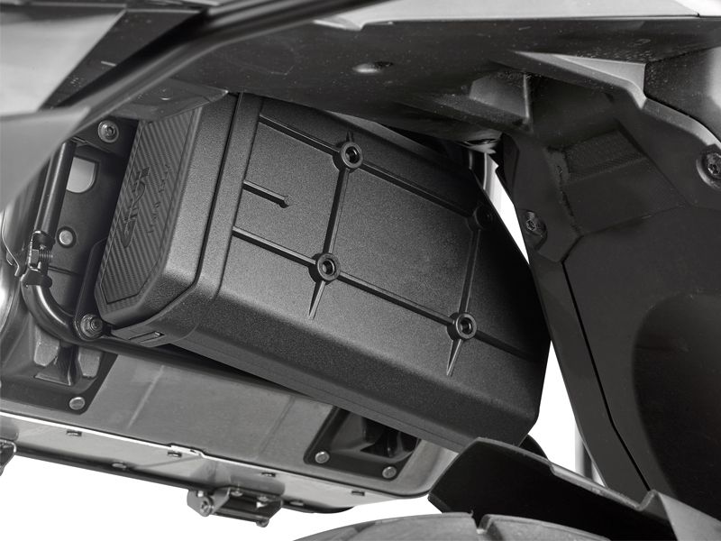 Soporte tool box Givi TL1156KIT Honda X-ADV 750 2017. Kit especíico para el montaje del tool box en los portamaletas Givi PL1156 y PL1158. Diseñado específicamente para el lado izquierdo de la moto Honda X-ADV 750. A combinar con el tool box Givi S250.