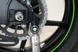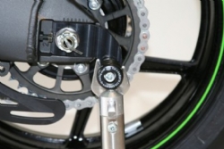 Los soportes de caballete con Offset de RG Racing están diseñados para proteger el basculante y los componentes clave de daños en caso de una caída, deslizamiento o accidente. Además, actúan como un punto de apoyo para levantar la rueda trasera de la moto con un caballete de paddock, facilitando tareas como el ajuste de la cadena, su lubricación y la limpieza general de la rueda.