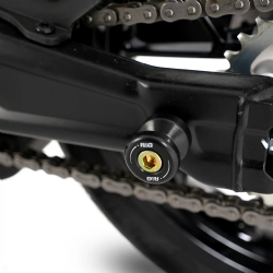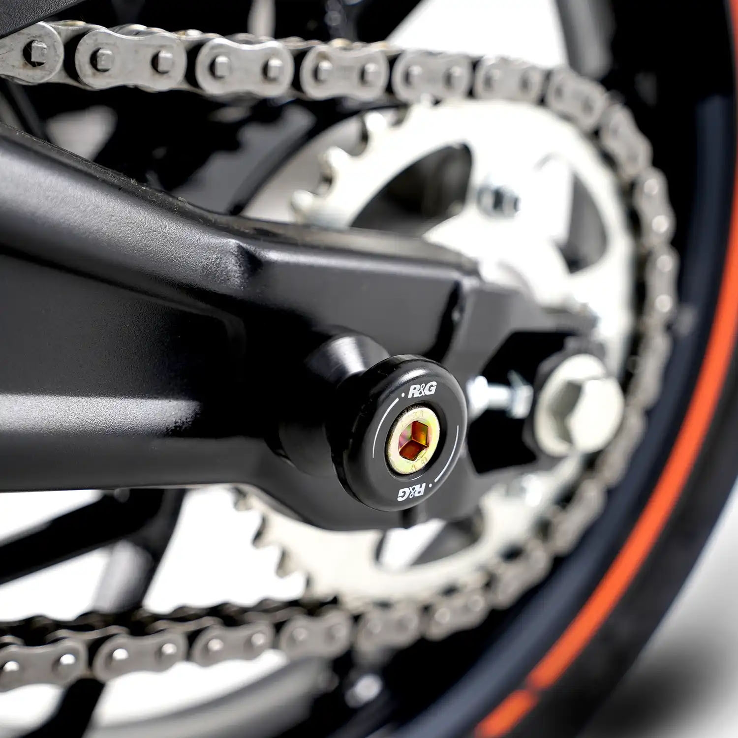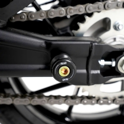 Soportes De Caballete Rg Racing Cr0005bk Negro Kawasaki Z 750 2004 2006. Los soportes de caballete RG Racing, conocidos como Cotton Reels, son una excelente opción para cualquier motociclista que valore tanto la protección de su moto como su fácil mantenimiento. Estos bobbins de tamaño grande se atornillan directamente en los orificios del basculante de tu motocicleta. Su diseño robusto no solo protege el basculante contra golpes y roces en caso de caída, sino que también facilita el levantamiento de la moto en un caballete trasero, haciendo tareas como el ajuste y lubricación de la cadena mucho más accesibles y cómodas.