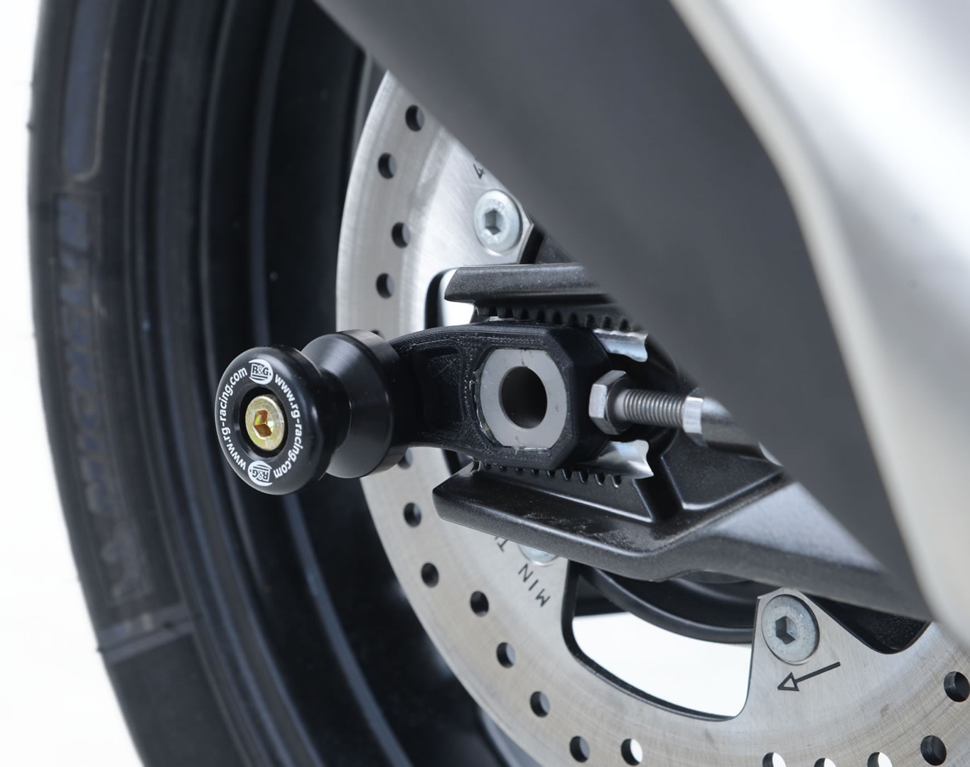 Soportes De Caballete Rg Racing Cr0064bk Negro BMW G 310 R 2022 2023. Los soportes de caballete RG Racing, conocidos como Cotton Reels, son una excelente opción para cualquier motociclista que valore tanto la protección de su moto como su fácil mantenimiento. Estos bobbins de tamaño grande se atornillan directamente en los orificios del basculante de tu motocicleta. Su diseño robusto no solo protege el basculante contra golpes y roces en caso de caída, sino que también facilita el levantamiento de la moto en un caballete trasero, haciendo tareas como el ajuste y lubricación de la cadena mucho más accesibles y cómodas.