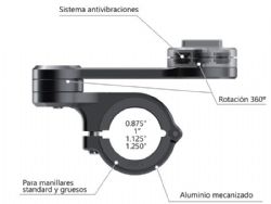 - Se puede instalar en manillares de diferente diámetro (0.875", 1", 1.125", 1.250").