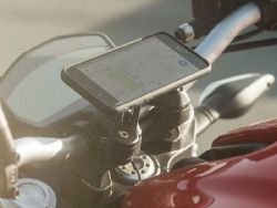 Soporte Smartphone Kit Moto Bundle Sp Connect Universal. El kit SP Connect Moto Bundle te permitirá colocar tu smartphone en la moto en un abrir y cerrar de ojos. Cuenta con el soporte Moto Mount Pro diseñado para colocar en el manillar de la moto y fabricado en aluminio mecanizado para una óptima resistencia. Este soporte permite la colocación de la funda para el Smartphone de Sp Connect o el soporte universal posicionandolo en el soporte y girándolo 90 grados en el sentido de las agujas del reloj. Para ofrecer una protección superior, el kit SP Connect Moto Bundle cuenta con un sistema interno antivibraciones que suprime la fuerza G en hasta un 40% (según el modelo de moto y smartphone). El teléfono móvil queda perfectamente posicionado en el centro para ofrecer la mejor visibilidad, siendo ideal sobretodo para utilizar un navegador GPS. Incluye una práctica funda para proteger el smartphone del agua y la suciedad, así como para ofrecer mayor resistencia a los impactos. Los protectores de pantalla gruesos o el tipo de guante puede limitar la utilidad de la pantalla táctil en combinación con la funda de lluvia.