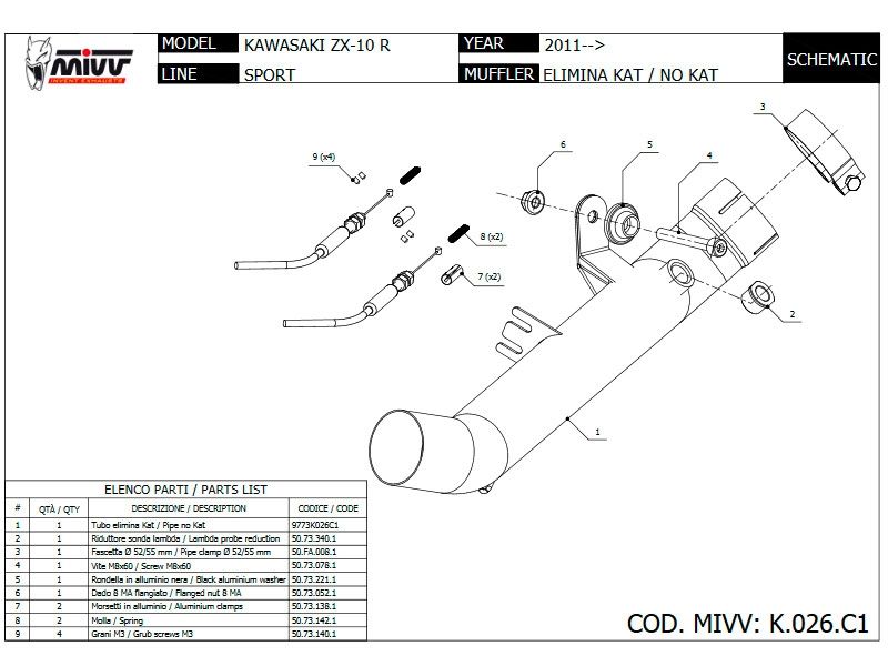 Supresor catalizador Mivv K.026.C1. El tubo no kat opcional Mivv K.026.C1 ofrece más potencia especialmente en conjunto con los slip-on Mivv. Este producto mejora tu moto garantizando un diseño más bonito y un sonido único. El supresor de catalizador Mivv K.026.C1 no está homologado según las normativas vigentes para el uso de la moto en carretera.