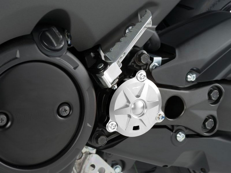Tapa piñón Puig 8502P Hi-Tech Yamaha T-Max 530 2012/2016 Plata. Nueva tapa de piñón Puig 8502P específica para la Yamaha T-Max 530 y que le da un toque de elegancia. Realizado an aluminio anodizado, la tapa de piñón Puig 8502P forma parte de una línea de accesorios llamada Hi-Tech y que Puig ofrece para personalizar las T-Max. Su instalación es muy sencilla. La tapa piñón Puig 8502 está disponible en 5 colores diferentes.
