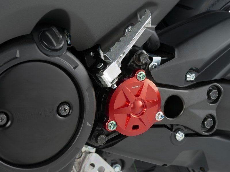 Tapa piñón Puig 8502R Hi-Tech Yamaha T-Max 530 2012/2016 Rojo. Nueva tapa de piñón Puig 8502R específica para la Yamaha T-Max 530 y que le da un toque de elegancia. Realizado an aluminio anodizado, la tapa de piñón Puig 8502R forma parte de una línea de accesorios llamada Hi-Tech y que Puig ofrece para personalizar las T-Max. Su instalación es muy sencilla. La tapa piñón Puig 8502 está disponible en 5 colores diferentes.