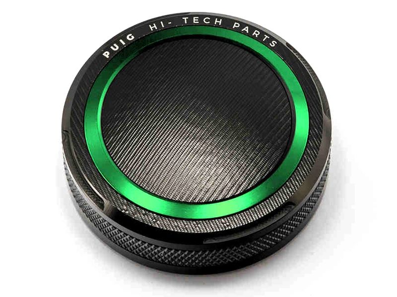 Tapa depósito fluidos Puig 9264V (posición freno) Verde. Tapa depósito líquido de frenos Puig 9264V realizada a partir de un bloque de aluminio macizo y posteriormente mecanizadas con CNC. El resultado final es una tapa de alta calidad y perfectos acabados. Anodizado en diferentes colores. Precio por unidad.