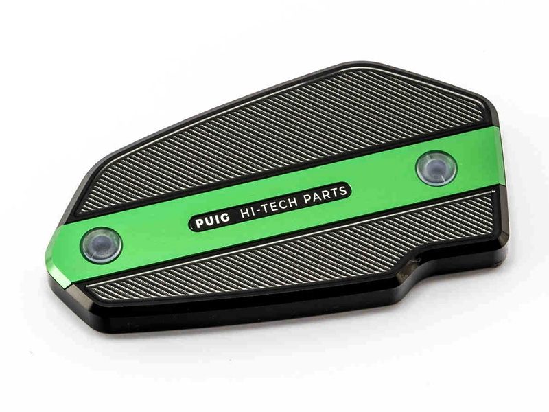 Tapa depósito fluidos Puig 9275V (freno y embrague) Verde. Tapa depósito líquido Puig 9275V válida tanto para el freno delantero como para el embrague. Realizada a partir de un bloque de aluminio macizo y posteriormente mecanizadas con CNC. El resultado final es una tapa de alta calidad y perfectos acabados. Anodizado en diferentes colores. Precio por unidad.