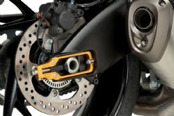 Tensor de cadena Puig 21191O Suzuki GSX-S 1000 2021-2023 Oro (Incluye el juego). Los nuevos tensores de cadena para moto Puig ofrecen funcionalidad, además de un bonito diseño en el que se ha cuidado hasta al más mínimo detalle. Estos tensores de cadena están fabricados con materiales de alta calidad y han sido fresados a partir de un bloque de aluminio para garantizar ligereza y resistencia.