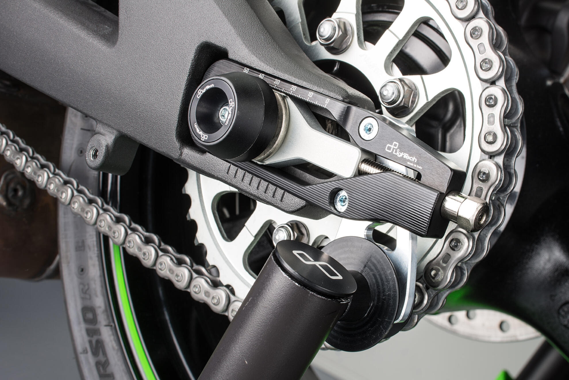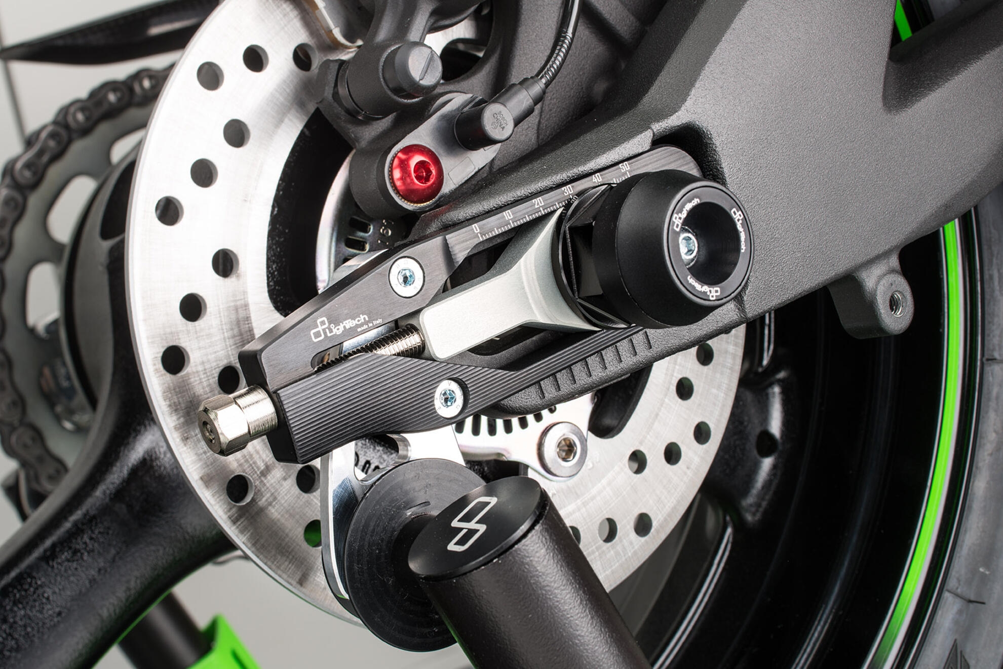 Tensores de cadena Lightech TEKA002NER Kawasaki ZX 10 R 2016-2023 Negro. Tensores de cadena Lightech en Ramirez Moto: Precisión y resistencia en el ajuste de la cadena. Los tensores de cadena Lightech son la solución ideal para quienes buscan mejorar el ajuste y la durabilidad de la cadena en su moto. Fabricados en Ergal 7075 mecanizado a partir de una pieza sólida, estos tensores garantizan una resistencia superior y ofrecen un ajuste más preciso y sencillo que los tensores de cadena de serie.