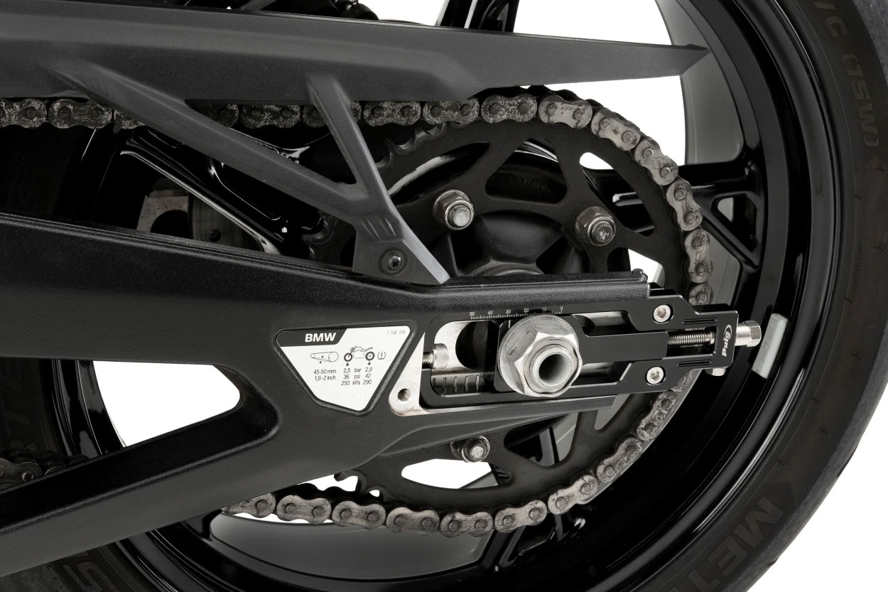Tensores de cadena Puig 21038N Bmw S1000 RR 2019-2025 Negro (Incluye el juego). Los nuevos tensores de cadena para moto Puig 21038 Bmw S1000 RR 2019-2025 ofrecen funcionalidad, además de un bonito diseño en el que se ha cuidado hasta al más mínimo detalle. Estos tensores de cadena Puig 21038 Bmw S1000 RR 2019-2025 están fabricados con materiales de alta calidad y han sido fresados a partir de un bloque de aluminio para garantizar ligereza y resistencia.