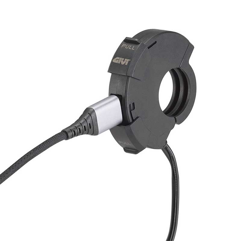 El hecho de llevarla fija en el manillar la hace perfecta para combinar con soportes de móvil o GPS Givi, manteniendo todo el conjunto ordenado y con el mínimo de cables sueltos.