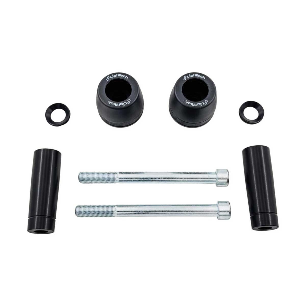 Lightech pone a disposición recambios específicos para los protectores de chasis (frame sliders). Así, en caso de desgaste o daño tras una caída, puedes sustituir las piezas sin necesidad de cambiar el kit completo.