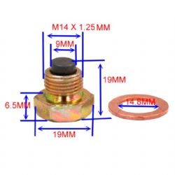 Tornillo magnético drenaje aceite JMP M14X1.25 mm 7239312 con el anillo de sellado. El Tornillo Magnético de Drenaje de Aceite JMP M14X1.25 mm 7239312 es una pieza esencial para el mantenimiento eficiente de tu vehículo. Con una rosca de M14X1.25 mm 7239312 y una longitud de 19 mm, este tornillo está diseñado para ofrecer una solución segura y fiable para el drenaje del aceite. La cabeza hexagonal, con una anchura de llave de 17 mm, permite una instalación y extracción sin esfuerzos, asegurando que el proceso de mantenimiento sea tan sencillo como sea posible.