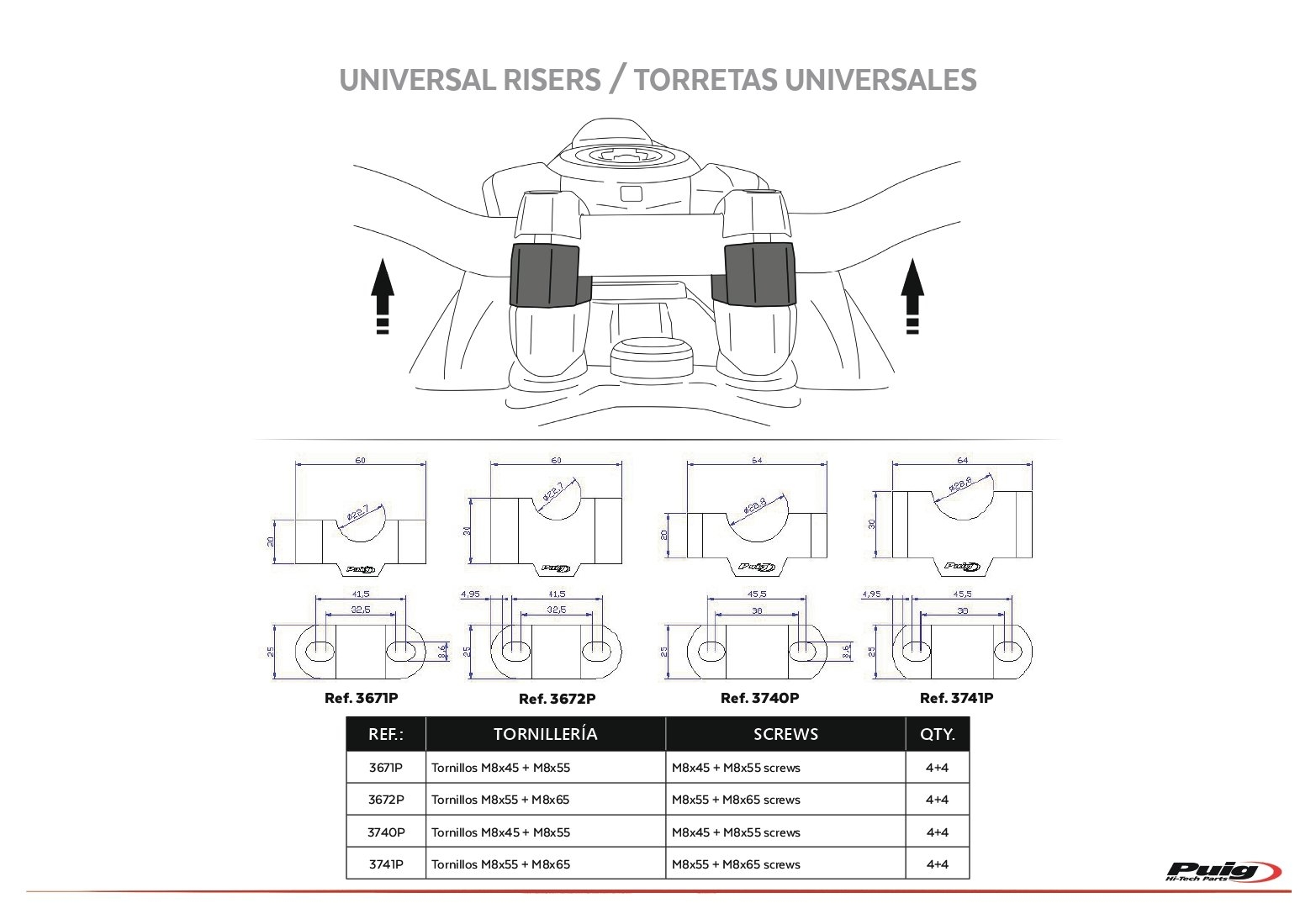 Torretas manillar Puig 3740P. Con las torretas Puig 3740P podrás mejorar tu experiencia de conducción sobre la moto. Diseñadas bajo la vertiente de Hi-Tech Parts y mecanizada a partir de un bloque de aluminio, con anodizado de colores, estas torretas serán la pieza perfecta para elevar la posición del manillar de la motocicleta, mejorando tu posición durante la conducción. Puig tiene disponibles dos medidas, 20mm y 30mm de altura, y es apto para manillares de 22, 29 y 32 milímetros de diámetro seún el modelo.