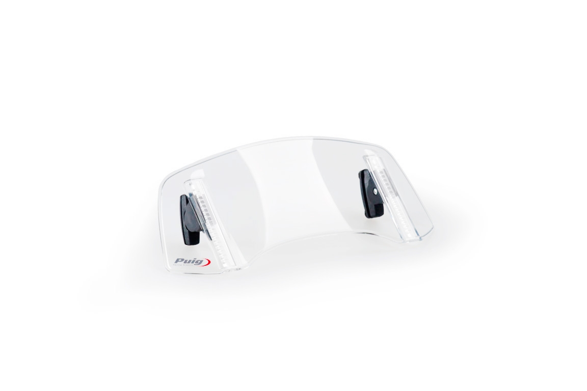 La visera multi-regulable Puig 2.0 está diseñada con líneas minimalistas y realizada en policarbonato de alta visibilidad, anti rayas y de elevada durabilidad. Posee unas medidas (300mm de ancho y 130mm de alto) ideales para ofrecer una amplia cobertura contra el viento, evitando así posibles turbulencias y sonidos molestos.