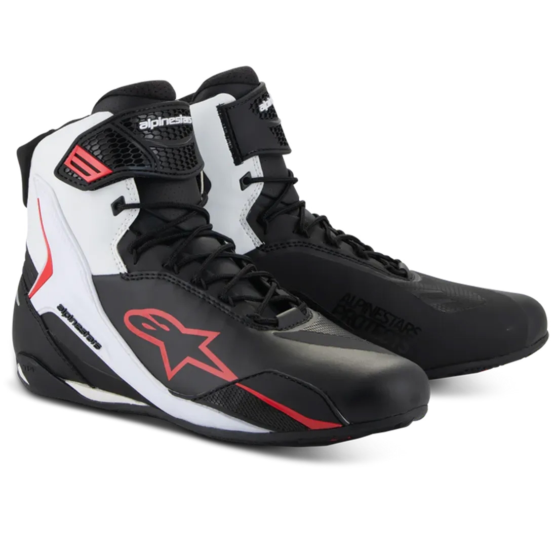 Zapatillas Alpinestars Faster-4 Negro / Blanco / Rojo. Zapatillas de moto Alpinestars Faster-4: ligereza, flexibilidad y protección para tu día a día. Las zapatillas Alpinestars Faster-4 combinan décadas de experiencia en competición con las últimas innovaciones en diseño y tecnología para motoristas. Pensadas para ofrecer el máximo confort en trayectos urbanos y deportivos, las Faster-4 destacan por su construcción ligera, su gran transpirabilidad y su protección avanzada en las zonas clave del pie.