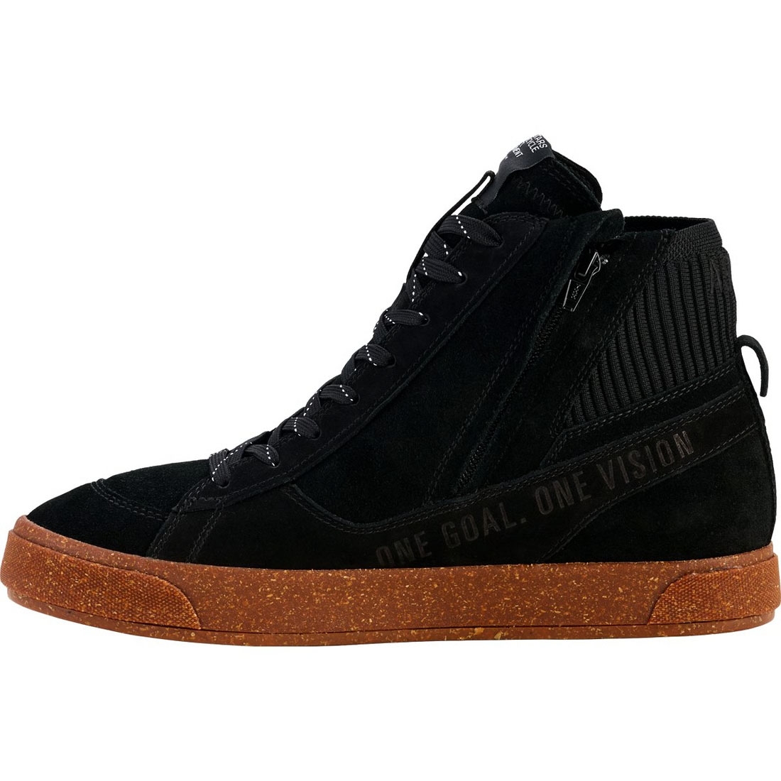 - Suela de goma vulcanizada con vendaje lateral para un agarre firme y excelente tracción, tanto en la moto como al caminar.