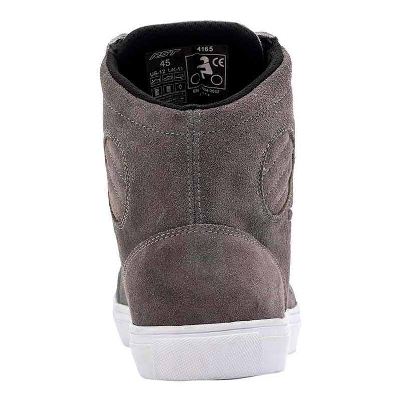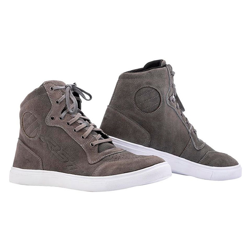 Zapatillas RST Hitop Moto CE Gris. Las RST Hitop Moto son las zapatillas de moto definitivas. Altamente confortables cuando te dispones a caminar con ellas pero con la protección de unas botas cuando estás encima de tu moto. Confeccionadas en cuero nobuk de alta resistencia y flexibilidad, están equipadas con la práctica membrana SinAqua impermeable que te mantendrá seco en las condiciones más húmedas. Dispone de protectores en la zona de los tobillos y puntera integrada. Disponible en versión de verano e invierno.