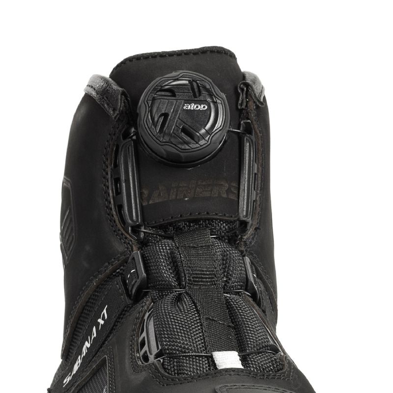 Fabricadas con una estructura mixta de piel flor y nylon técnico, las Sabana XT destacan por su gran flexibilidad y resistencia al desgaste. Incorporan refuerzos adicionales en la puntera y el talón, además de un protector específico en la zona de cambio de marchas, garantizando durabilidad en los puntos de mayor fricción. Su diseño ha sido cuidadosamente optimizado para ofrecer una movilidad natural del pie y una sensación de control total sobre la moto.