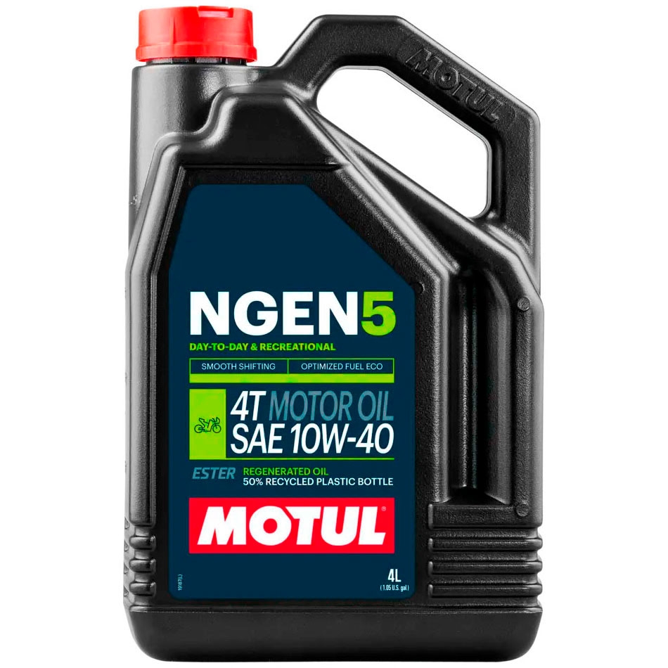 Aceite Motul NGEN 5 10W40 4T 4 Litros. Aceite de motor para moto Motul NGEN 5 de inigualable rendimiento y sostenibilidad. El mundo de la motocicleta está evolucionando, y con él, los productos que garantizan su funcionamiento óptimo. Consciente de esta realidad, Motul lanza al mercado el Motul NGEN 5, un innovador aceite para motores de 4T que se destaca por su alta calidad y compromiso con el medio ambiente.