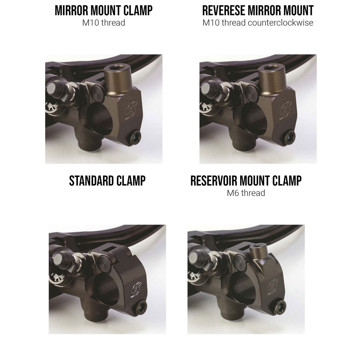 - Rear View Mirror Thread y (CCW): Diseñados para integrarse con soportes de espejo.
