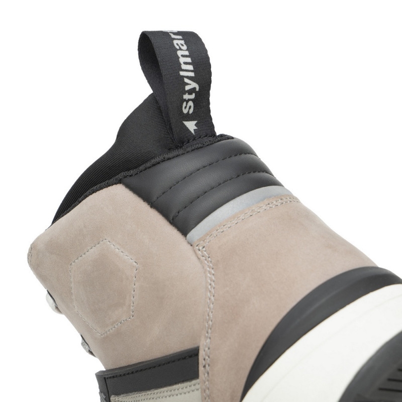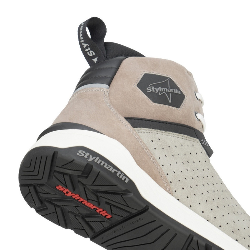 - Estilo: zapatilla de moto urbana de corte deportivo en color arena.