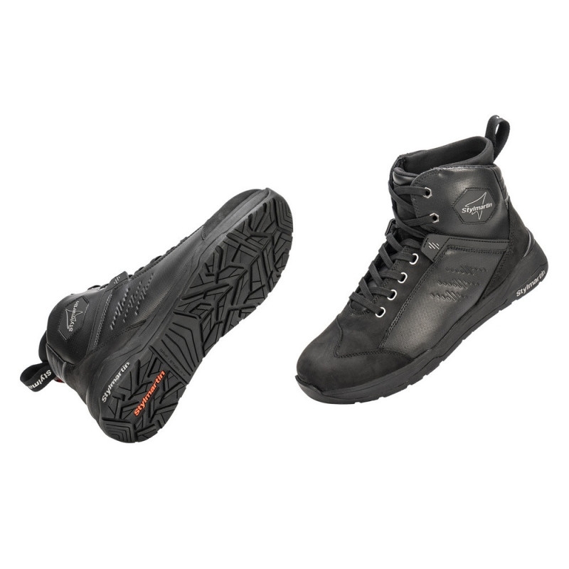 Las Stylmartin Blink WP Negro son unas zapatillas de moto urbanas impermeables de corte deportivo, pensadas para motoristas que usan la moto a diario y quieren combinar máxima protección con un look de sneaker moderna. Fabricadas en nubuck hidrófugo y piel de plena flor, ofrecen un tacto premium y una gran resistencia al desgaste, tanto en ciudad como en rutas cortas o medias.