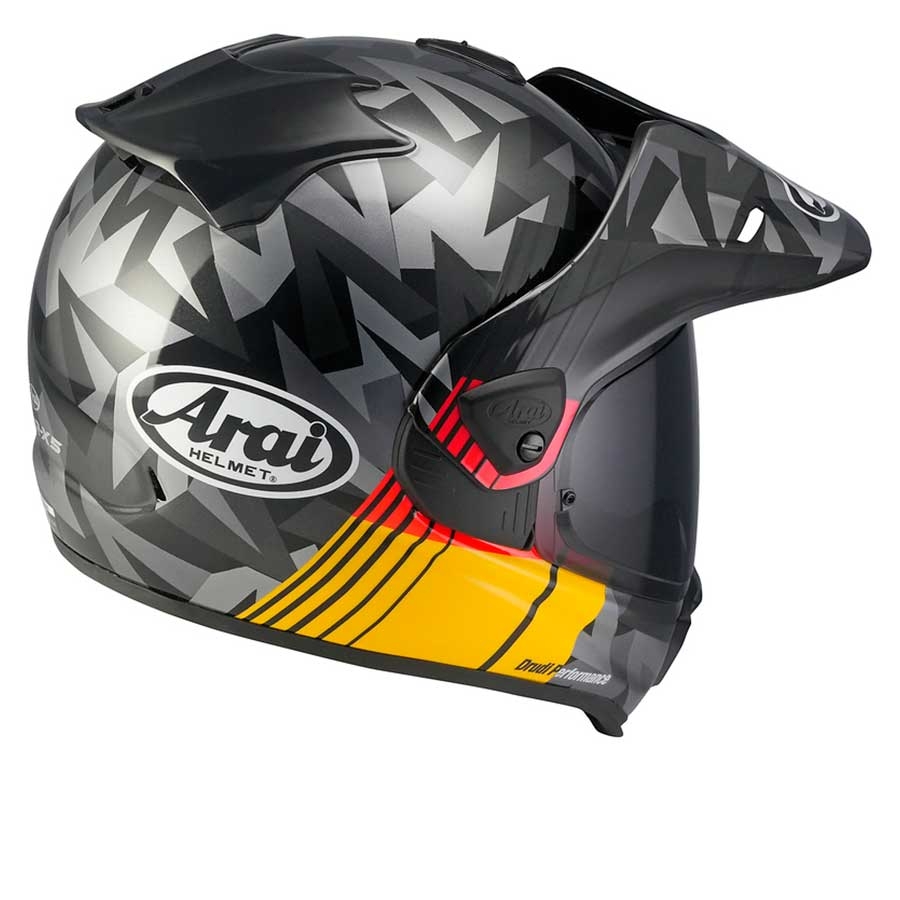 Tanto para cruzar un país por carretera como para perderte por pistas de tierra cerca de casa, el Casco Arai Tour-X5 Nation De Multicolor está preparado para acompañarte en todas tus aventuras con el estilo, el confort y la protección que esperas de un casco Arai trail–adventure.