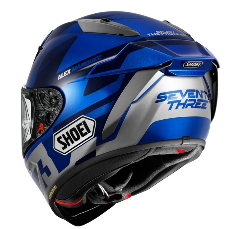 Casco Shoei X-SPR Pro Alex Márquez 73 V3 TC-2 — réplica oficial AM73. Doble homologación ECE 22.06 + FIM, visor CWR-F2R con Pinlock 120 y aerodinámica de competición desarrollada junto a pilotos de MotoGP.