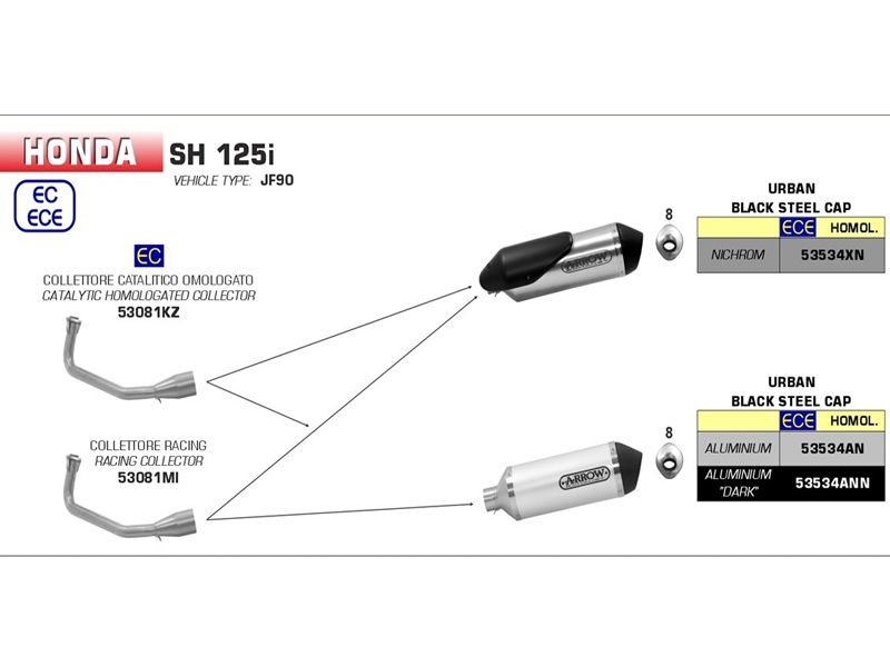 Colector Arrow 53081KZ Honda SH 125i 2020. Colector Arrow 53081KZ catalítico homologado para escape Urban. El colector catalítico homologado Arrow 53081KZ está fabricado en acero inoxidable muy ligero y duradero.
