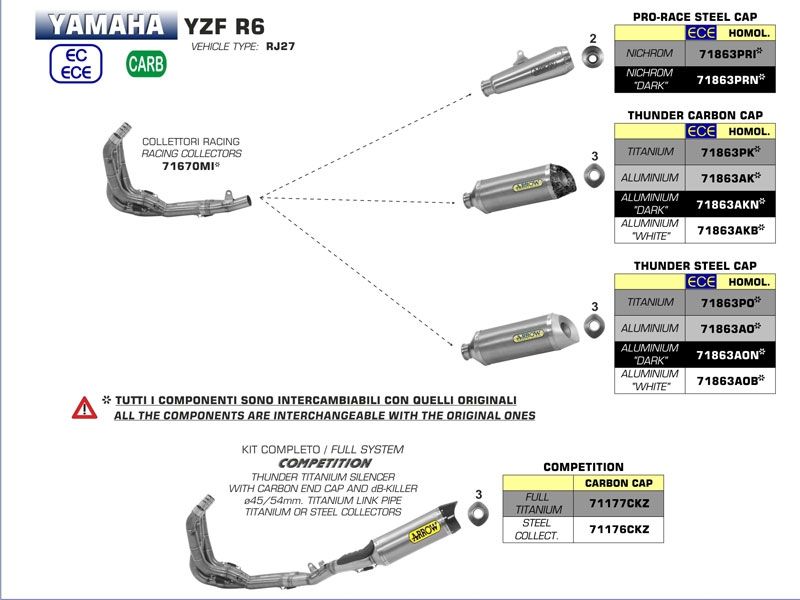 Colector Arrow 71670MI Yamaha R6 2017. Su diseño deriva directamente de la experiencia adquirida tras muchos años en el mundo de la competición. El colector Arrow 71670MI está fabricado en acero inoxidable AISI 304A, a esto se suma la profesionalidad y el conocimiento de los técnicos que se ocupan del diámetro, variaciones de sección, componentes, soldadura y diseño diligentemente controlados para obtener un producto muy competente, fiable y bonito.